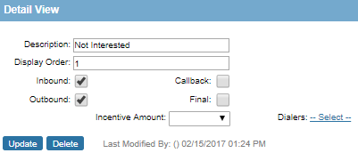 Callback: Checkbox if to set for a Callback. At a minimum, the Callback and Final need to be applied to different records.