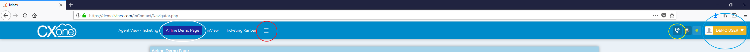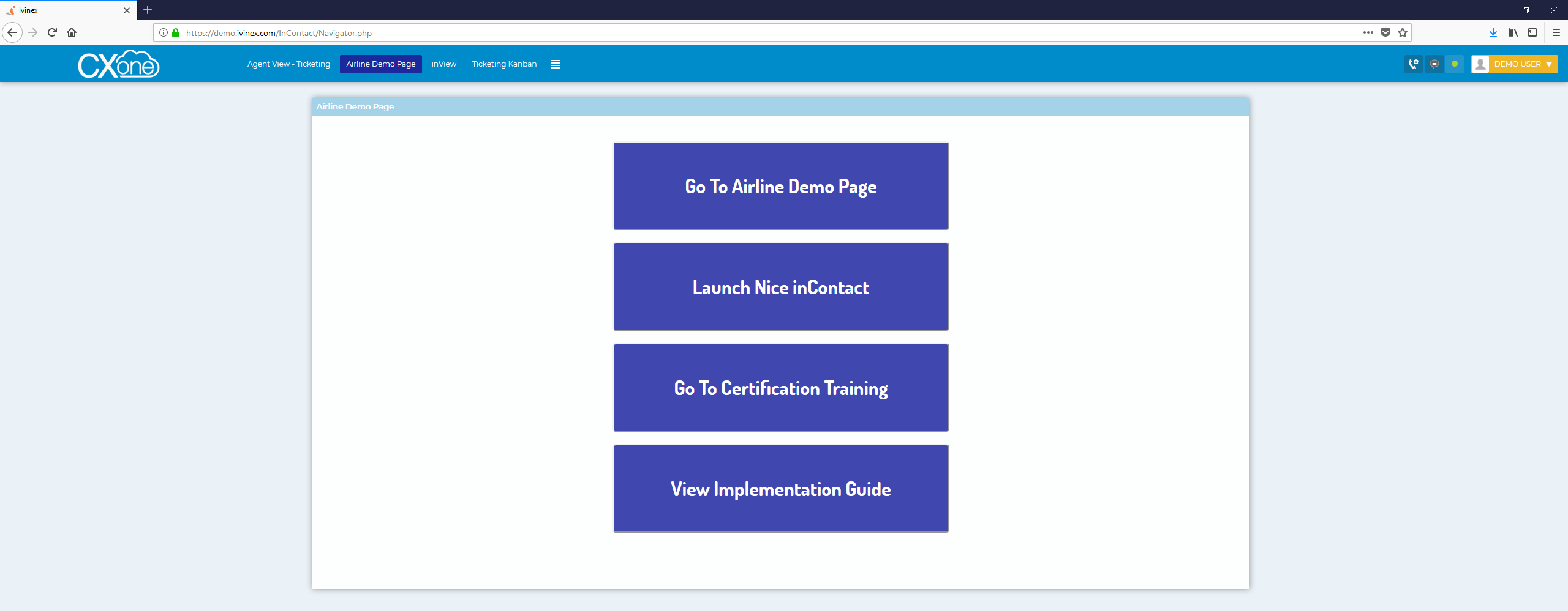 URL https://demo.ivinex.com/InContact