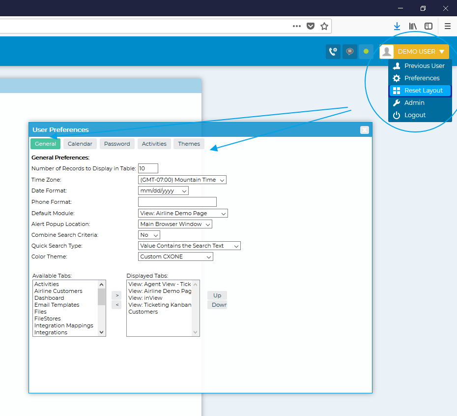 Agent View: this is the default view you will use to demo. Your sales engineer can also create custom views specific for your customer. When a call comes in or out, the Agent View tab is the screen the agent will be on and will be the screen pop with the right windows.